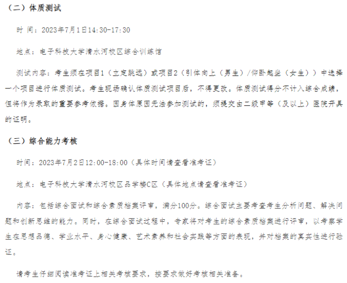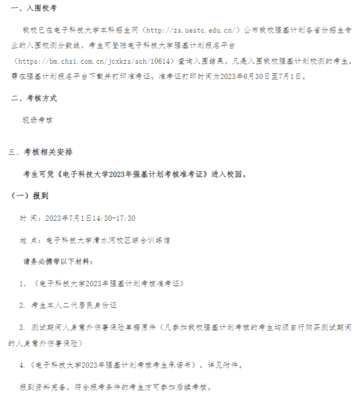 电子科技大学2023年强基计划入围分数线及校测安排!