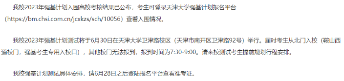 天津大学2023年强基计划入围分数线及校测安排!