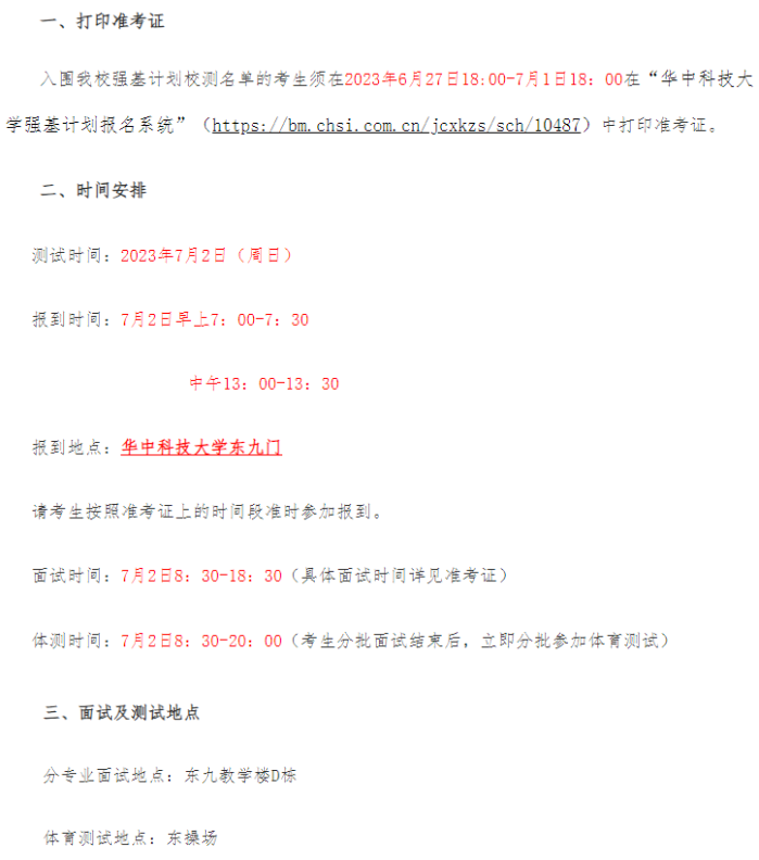 华中科技大学2023年强基计划入围分数线及校测安排!