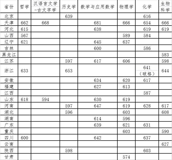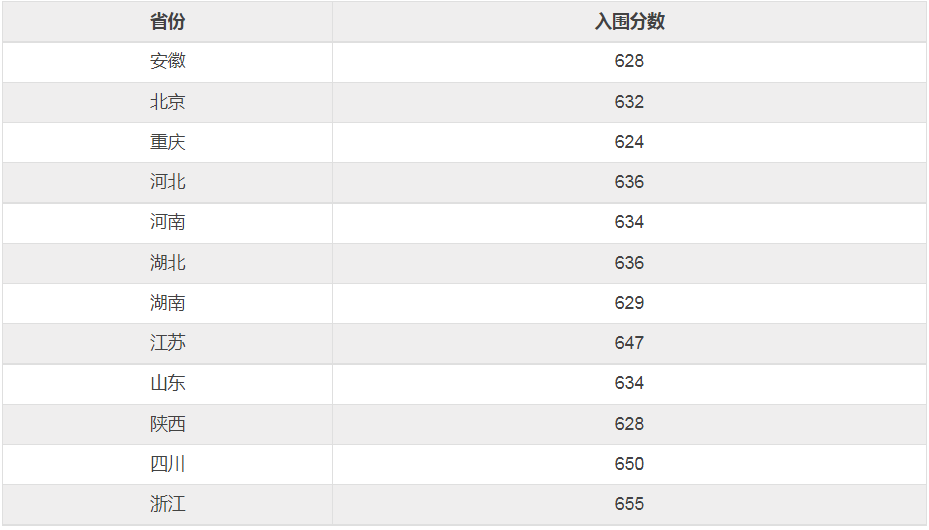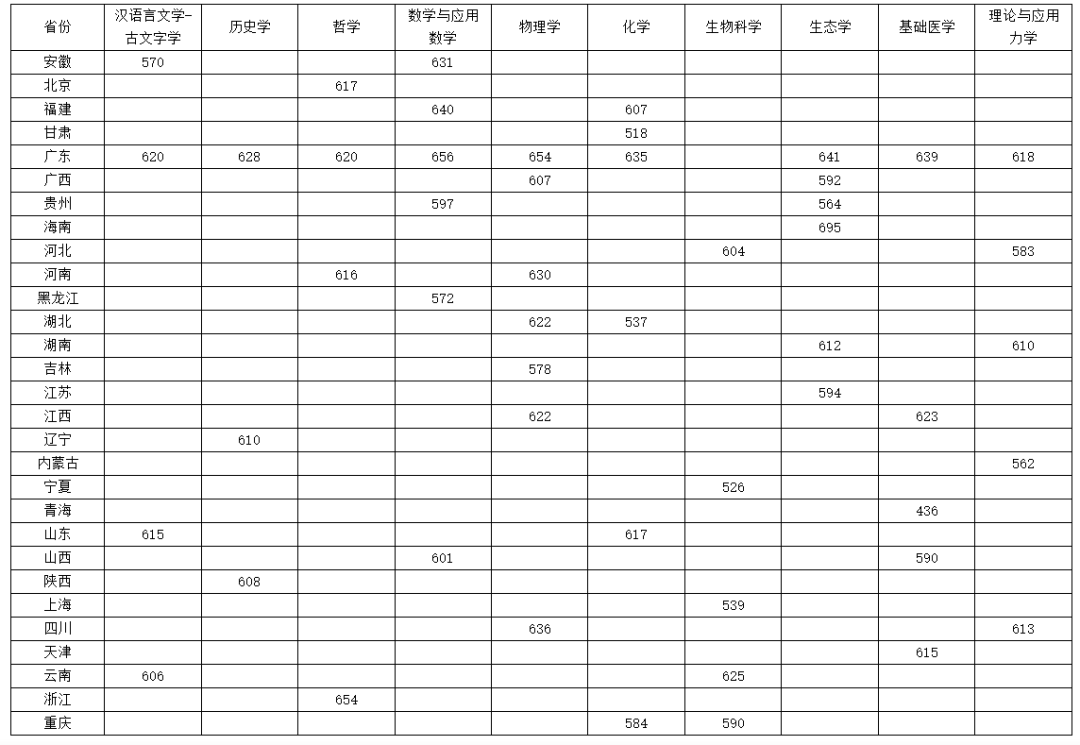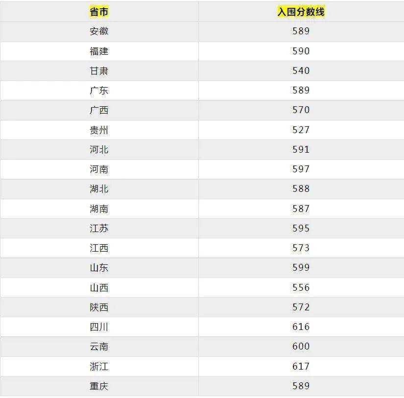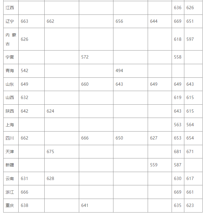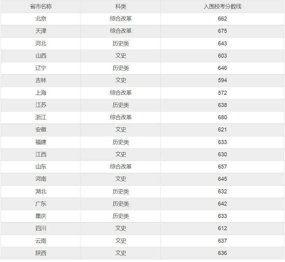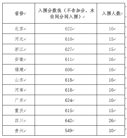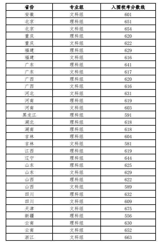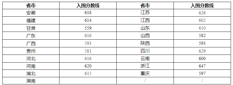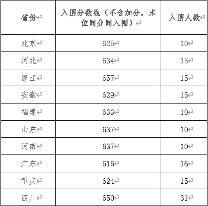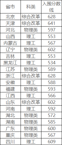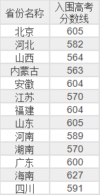 还有这些学校只有部分地区入围分数线: