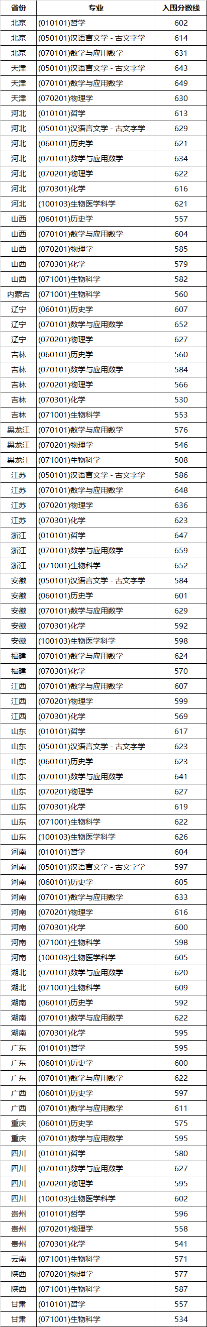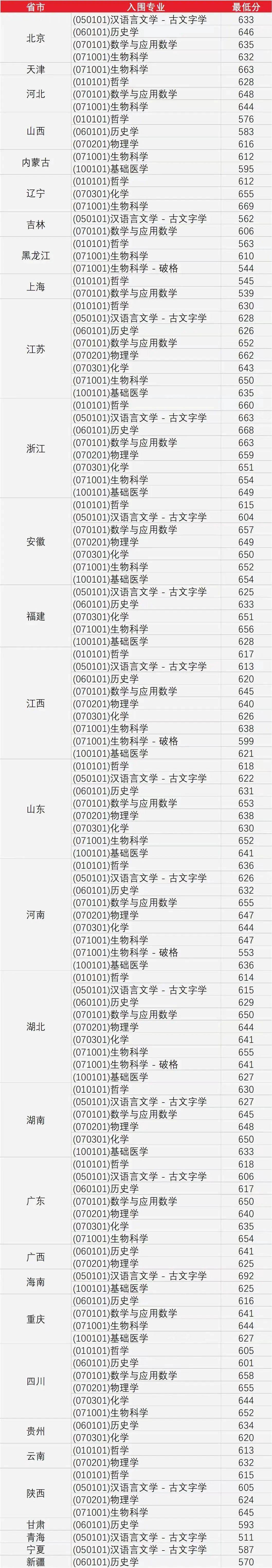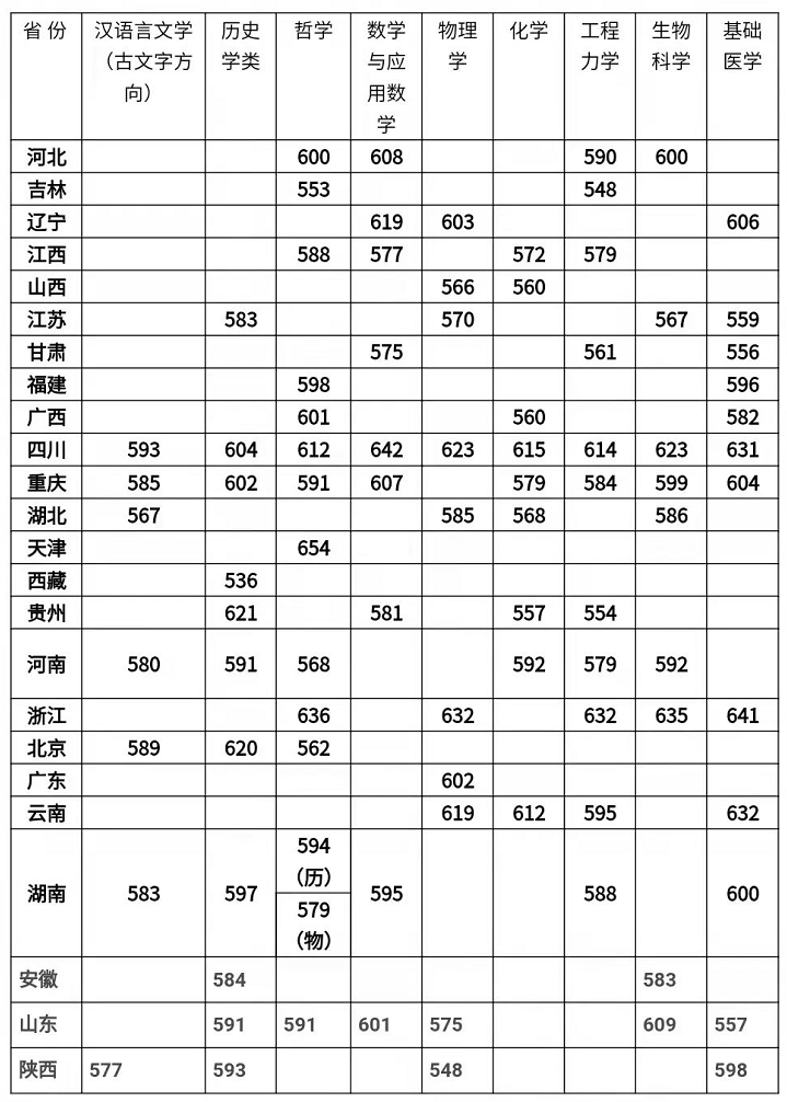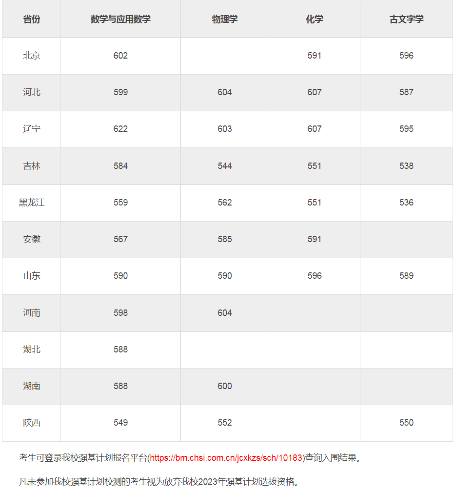 各地2022-2023 强基入围分数线汇总