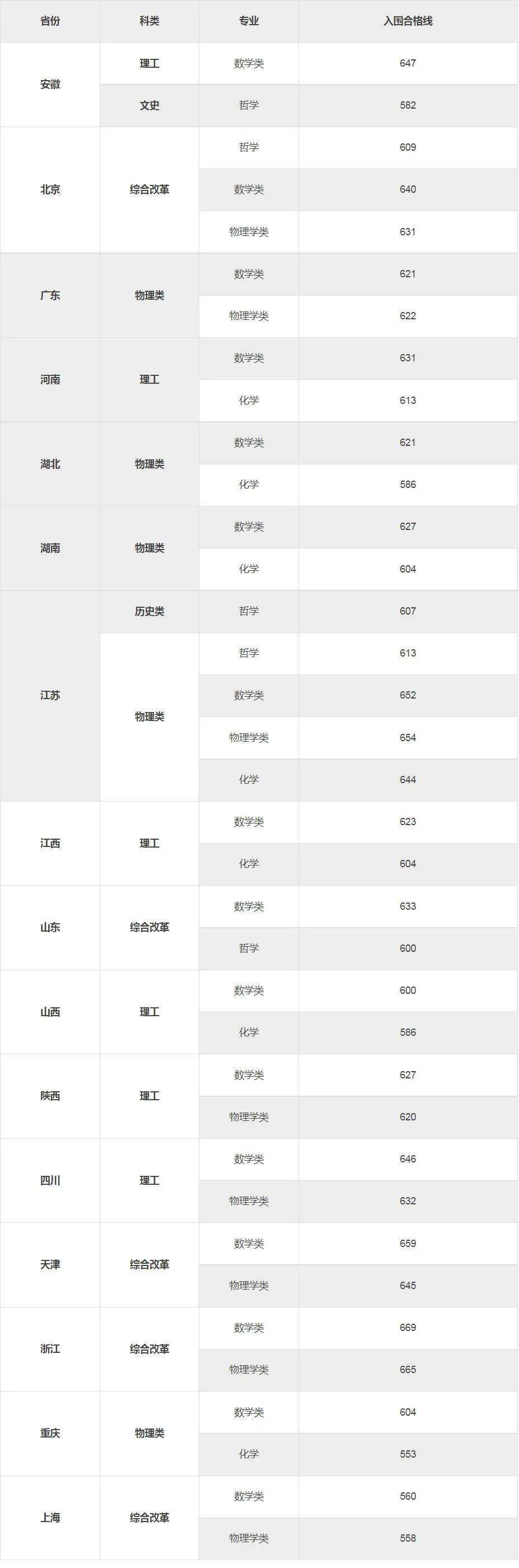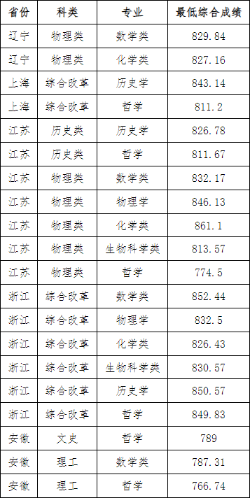数学专业分数线:浙江122分;