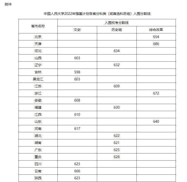 中国人民大学2023年 文史类专业入围线在云南、黑龙江省 集体下滑,与2022 年相比入围线普遍 降低20-30分之间 。例如: