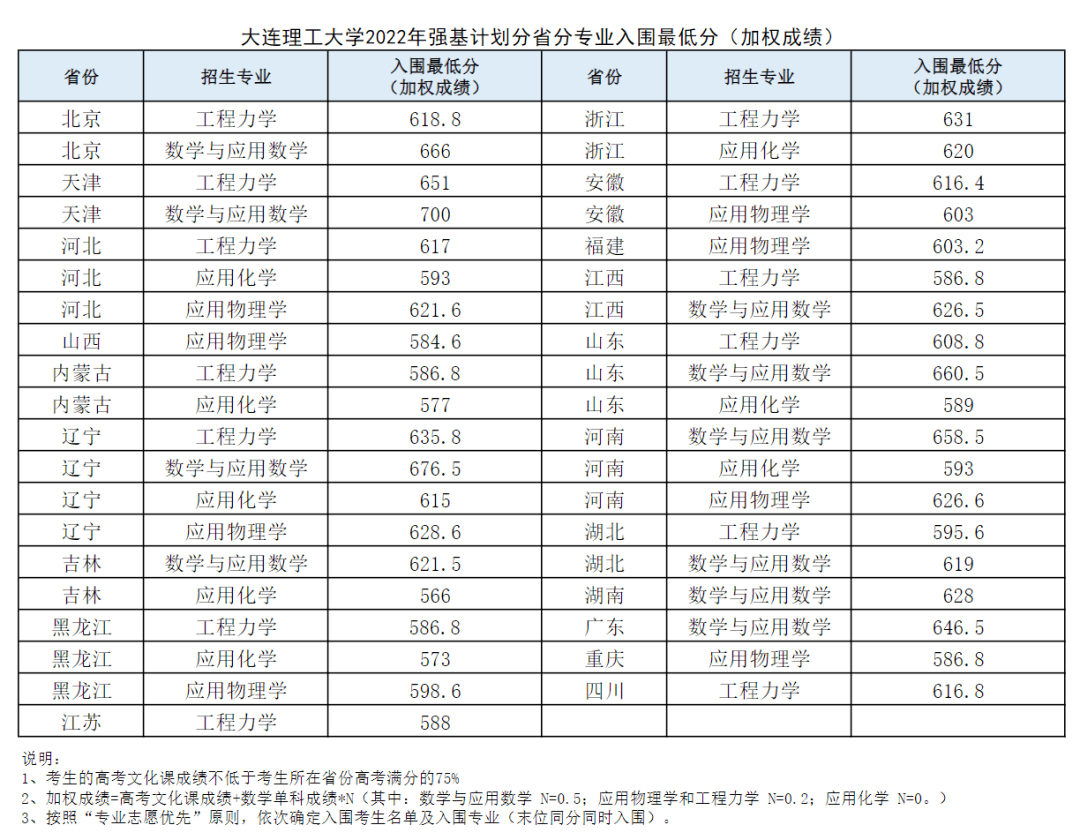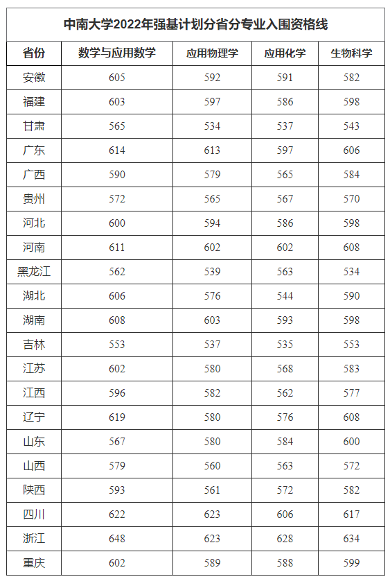 2022年强基计划 最低综合成绩