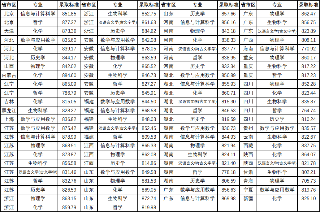 2023年强基计划入最低综合成绩