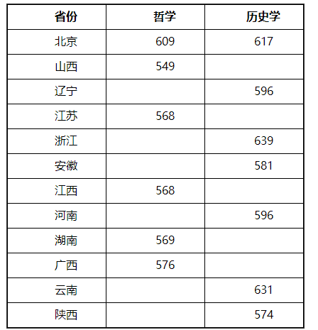 哲学专业分数线:河北38.89分,青海25.56分。