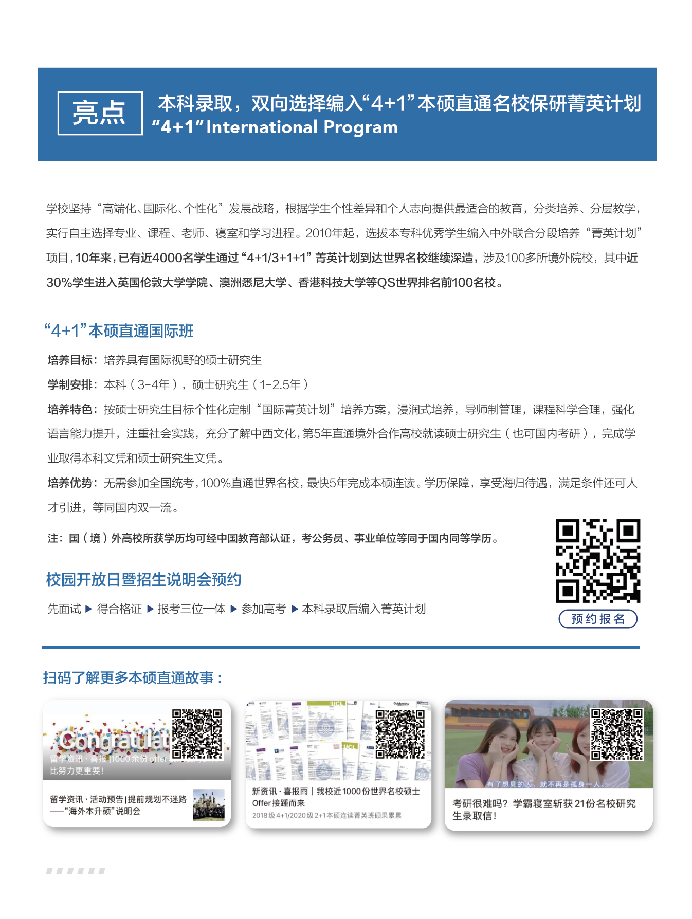 备注: 1.以上专业(类)基础学费35000元/学年;其中备注为国际班的专业(类)按照国际班收费标准缴纳;入学后,国际班学生不可转到普通班,考生应慎重填报; 2.国际班核心课程双语授课,导师制管理,参加“浸润式”英语学习,实现“国内本科+国外硕士”合作培养模式; | |||