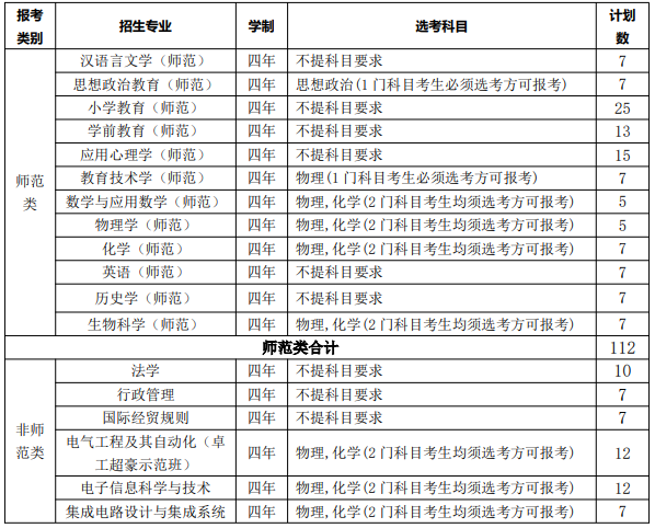 在师范类、非师范类两种报考类中,若某个类别志愿填报人数未达计划数的110%(按小数点进位),则该类别录取人数控制在志愿填报人数的85%(按小数点舍去)以内。男女比例不限,同等对待录取往届生与应届生。我校公共外语语种为英语和日语。学校严格执行《普通高等学校招生体检工作指导意见》(以下简称《意见》,并按规定在新生入学后进行体检复查。《意见》中明确“学校可以不予录取”、“学校有关专业可不予录取”的,均按“不予录取”执行。